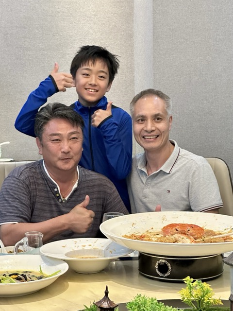 浙江省武術隊コーチが、生徒や保護者を会食に招いて下さいました。皆で豪華な温州料理を楽しみながら、武術隊コーチと桐山先生の修行時代のお話を伺ったりと、話が弾みました。