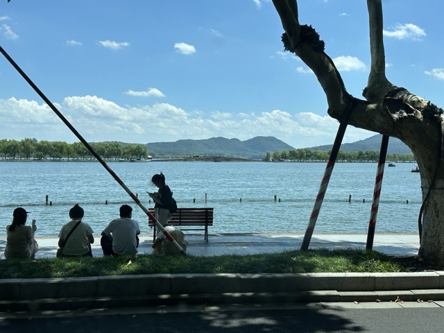 浙江省体育職業専門学院へ向かう際に見えた、世界遺産の西湖が、キラキラと輝いてとても綺麗でした!